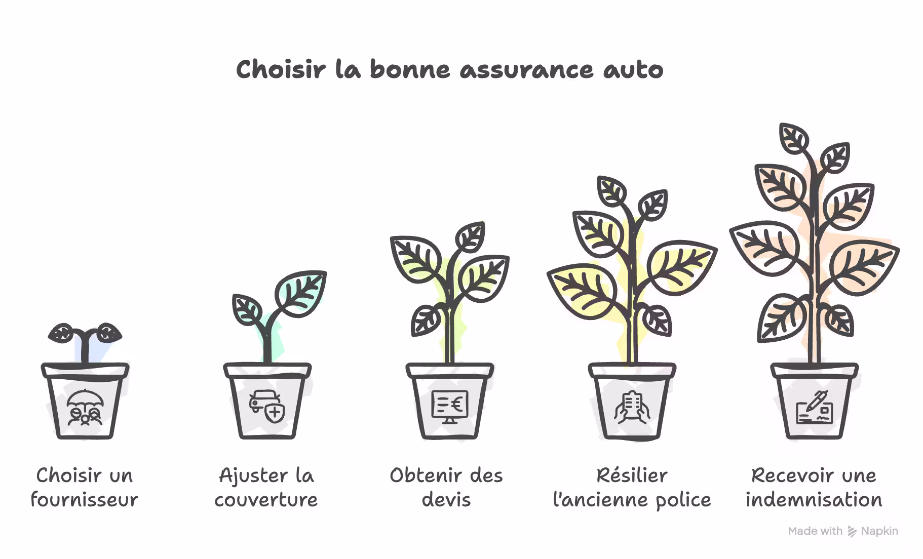 Un assureur auto couvre votre responsabilité civile obligatoire et, selon la formule, les dommages à votre véhicule (vol, incendie, bris de glace, tous accidents), l’assistance et la protection du conducteur. Il tarifie le risque selon votre profil, votre voiture et vos usages.