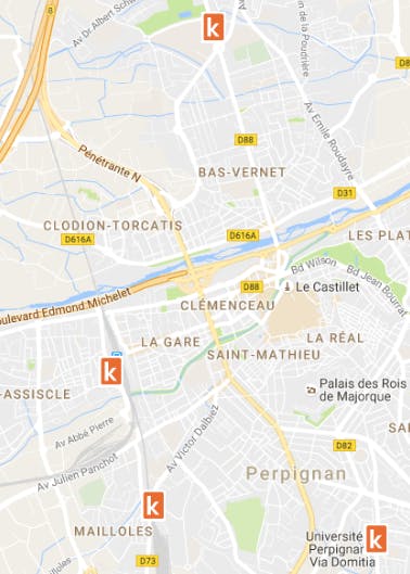 Vous trouverez la carte de nos points de rendez-vous conduite à Perpignan plus haut sur cette page. Ces points de rendez-vous pour vos leçons de conduite sont situés dans des endroits stratégiques de Perpignan, faciles d'accès et adaptés à l'apprentissage de la conduite. Un point de conduite à Perpignan ne correspond pas à une agence locale, mais plutôt à un lieu de rencontre avec votre enseignant. Ce dernier viendra vous chercher en voiture à ce point de rendez-vous, que ce soit près du Castillet, aux abords du Palais des Rois de Majorque ou dans un autre quartier de la ville, pour commencer votre leçon de conduite.