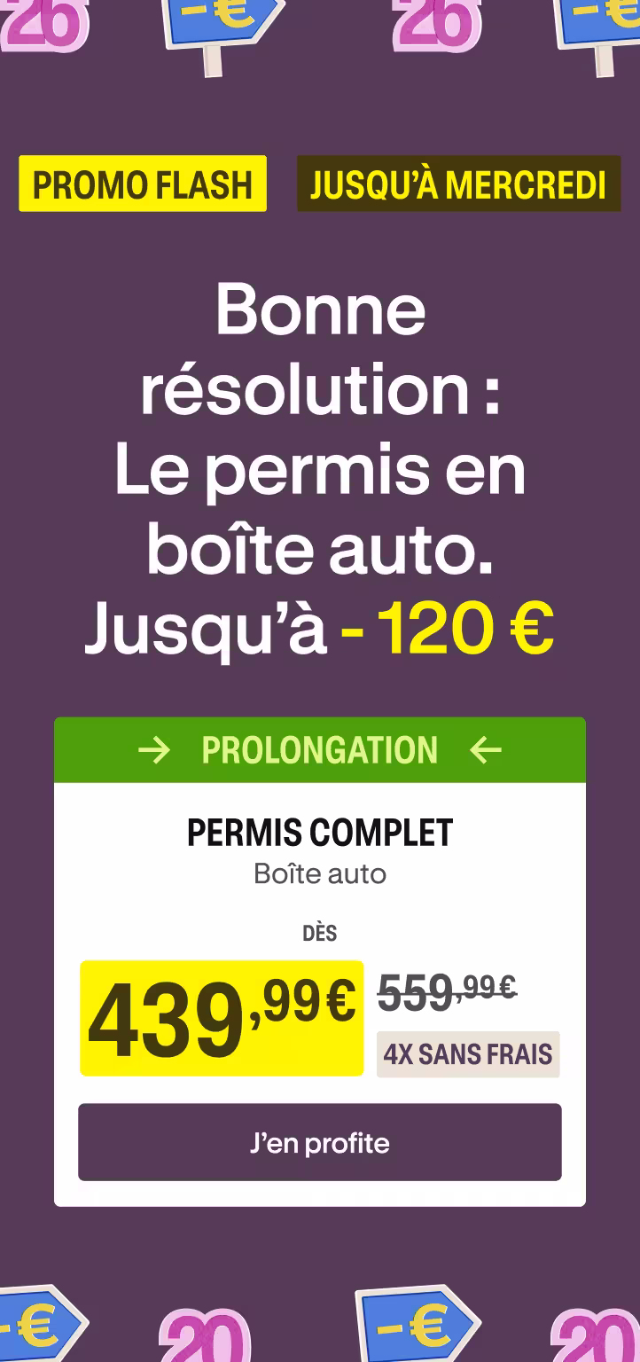 Votre première leçon de conduite, aussi appelée “heure d’évaluation”, est déterminante : c’est le moment où vous rencontrez votre enseignant et commencez à conduire pour qu’il évalue votre niveau. Si vous n’êtes pas satisfait de cette première leçon, nous vous offrons un nouvel essai avec un autre enseignant. Et si, à l’issue de cette nouvelle tentative, vous décidez de ne pas poursuivre l’aventure avec nous, nous vous remboursons l’ensemble de vos leçons non effectuées !